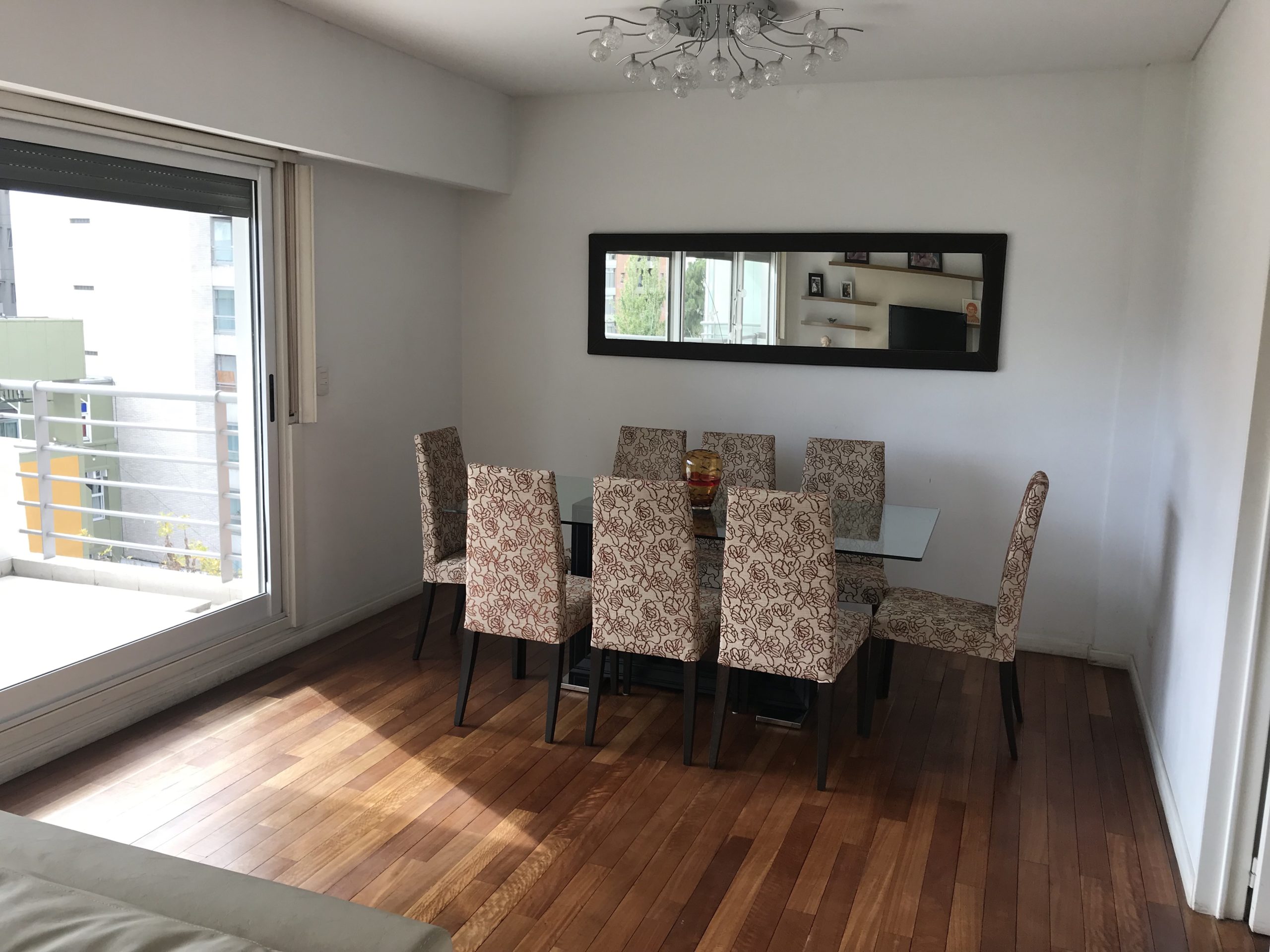 Al frente se encuentra el living comedor apaisado con salida a un amplio balcón. Toilette de recepción. Cocina con comedor diario. Dependencia con baño de servicio.